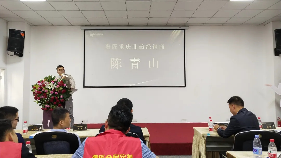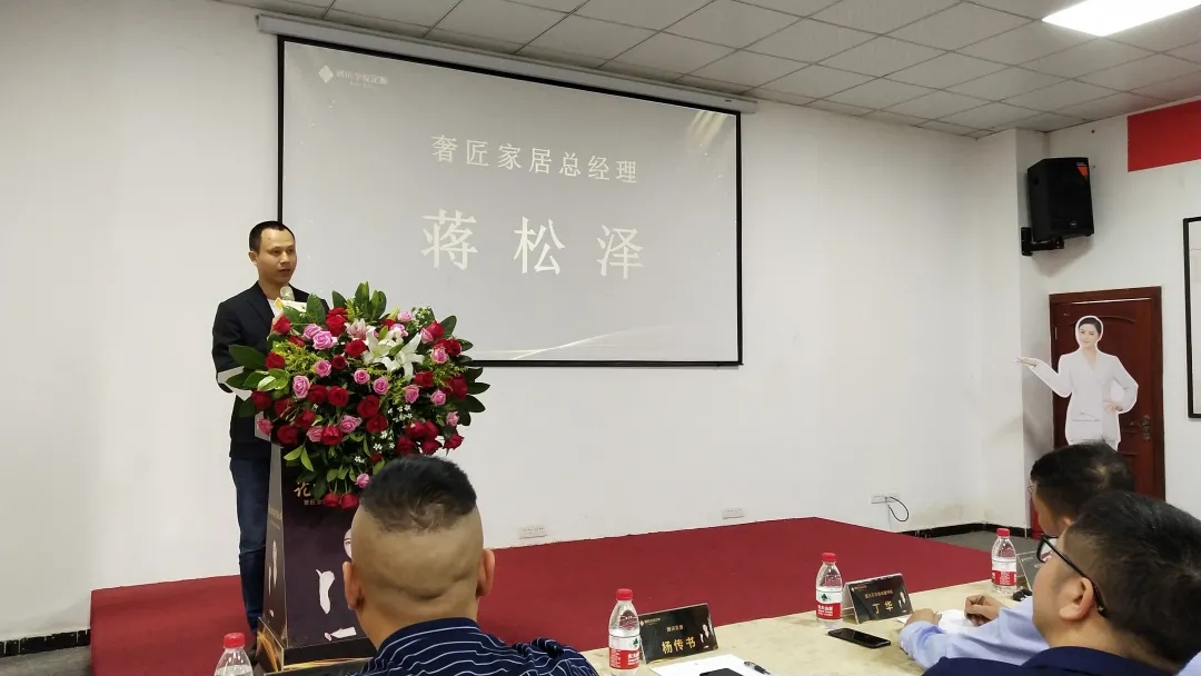 隨后,來自重慶北碚的經(jīng)銷商陳總在會上為我們講述了他與奢匠的故事。他說:“之所以選擇奢匠,是奢匠無論從工藝,產(chǎn)品設(shè)計還是給到經(jīng)銷商的保障,都超越其他品牌。所以,選擇奢匠,就會用心為奢匠產(chǎn)品背書,為選擇我們的客戶提供更專業(yè)的產(chǎn)品和服務(wù)。