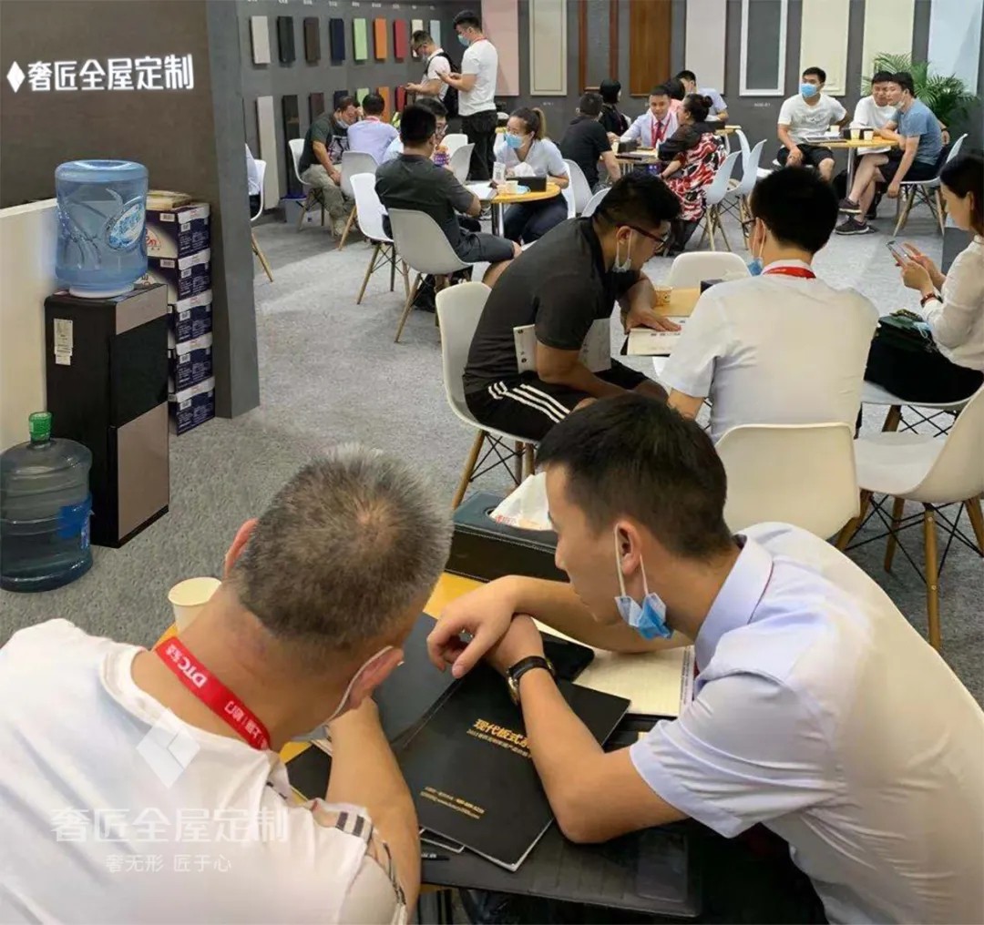 展會(huì)上,奢匠招商洽談區(qū)吸引不少意向客戶駐足交流,招商團(tuán)隊(duì)在與客戶交談過(guò)程中,為客戶解答相關(guān)疑問(wèn)及奢匠提供的一系列幫扶措施,從選店、建店、培訓(xùn)、策劃到引流、運(yùn)營(yíng)、營(yíng)銷、設(shè)計(jì),八大支持,賦能終端,讓客戶對(duì)奢匠有更多的了解與信賴。最終首日即簽約數(shù)組,成績(jī)斐然!并且此次展會(huì)加盟奢匠還可享受經(jīng)濟(jì)補(bǔ)貼、開業(yè)補(bǔ)貼等鉅惠招商政策,不容錯(cuò)過(guò)!