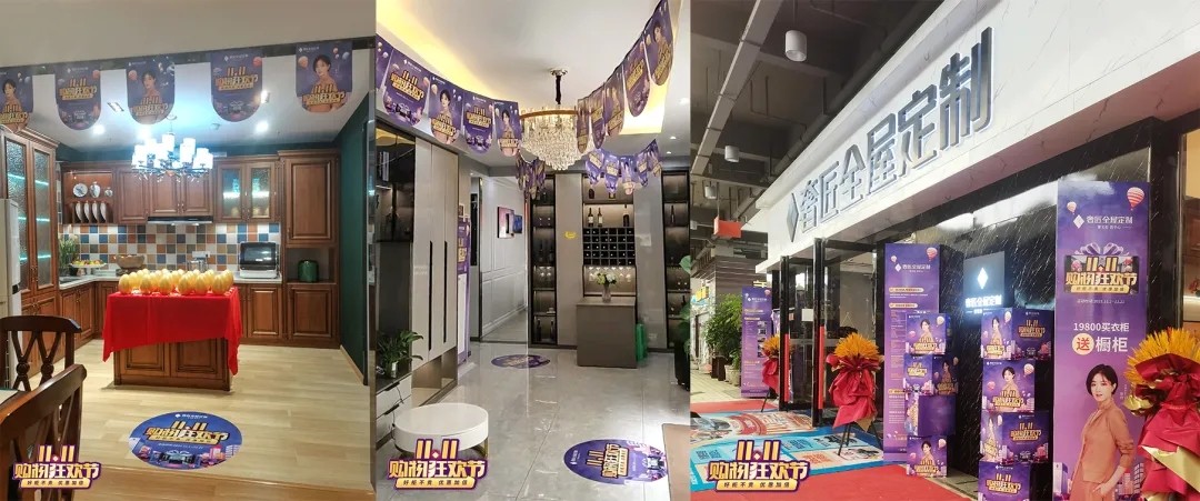 為了迎接雙11.11狂歡盛宴,奢匠全國終端門店的家人們拿出200%的熱情,精心籌備,周密布置,將門店布置的活力四射,讓進店消費者感受到熱力爆表的購物氛圍。同時,還為每位進店消費者準備了專享購物津貼,溫暖助力家居煥新!