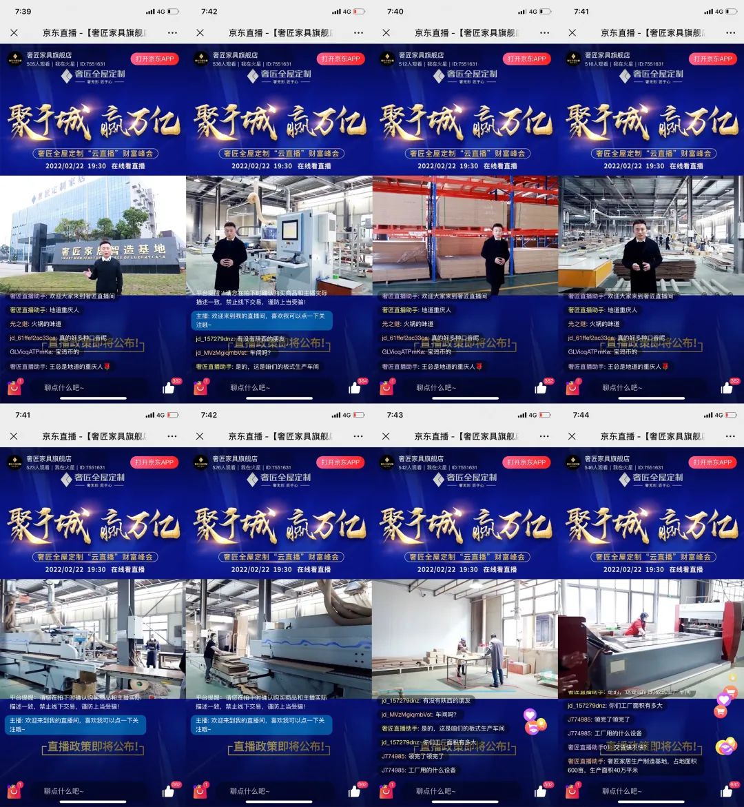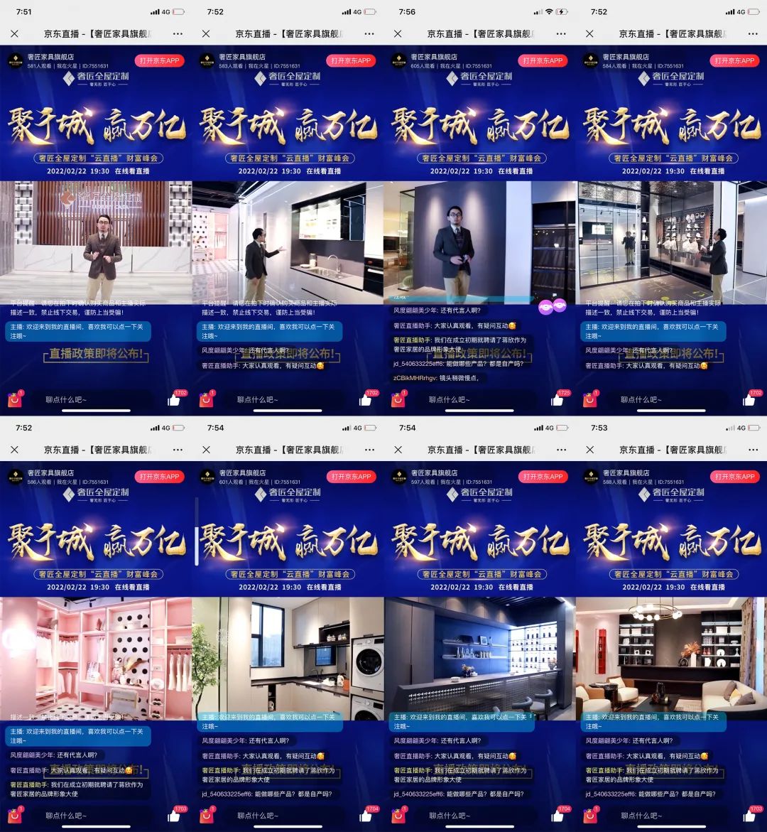 2022年2月22日,奢匠全屋定制“聚千城 贏萬億”云直播財富峰會圓滿結束。直播當天,觀看人數達千余人次, 直播封面點擊率達90%,簽約加盟17組,成績斐然!