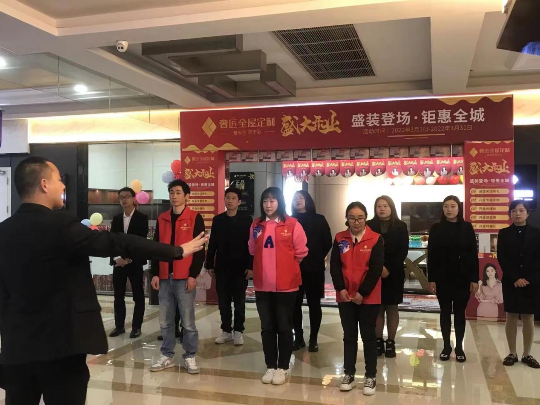 為推進(jìn)大足奢匠經(jīng)銷(xiāo)商門(mén)店的快速發(fā)展,在315大促活動(dòng)中斬獲佳績(jī)。謝老師帶領(lǐng)大足奢匠團(tuán)隊(duì)共同開(kāi)展活動(dòng)各項(xiàng)工作,根據(jù)大足市場(chǎng)趨勢(shì)制定活動(dòng)目標(biāo)。堅(jiān)持每天開(kāi)展晨會(huì),以口號(hào)、舞蹈、游戲等方式調(diào)動(dòng)積極性,鼓舞士氣;以及進(jìn)行日行動(dòng)承諾、優(yōu)秀者分享經(jīng)驗(yàn)等行動(dòng),以此開(kāi)展一天高效的工作。