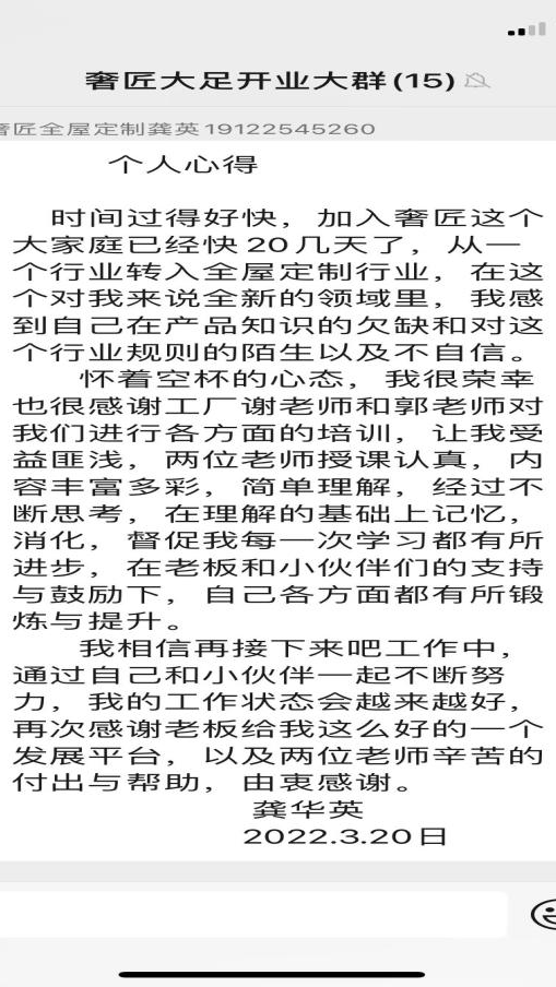 在活動(dòng)期間,為了促進(jìn)大足團(tuán)隊(duì)的快速成長(zhǎng),主動(dòng)營(yíng)銷(xiāo)謝老師專(zhuān)門(mén)建立“品質(zhì)315大促開(kāi)業(yè)活動(dòng)群”。并規(guī)定,店內(nèi)成員都需將當(dāng)天的工作成果與心得在群內(nèi)進(jìn)行發(fā)布,達(dá)到相互督促,相互成長(zhǎng)的目的。