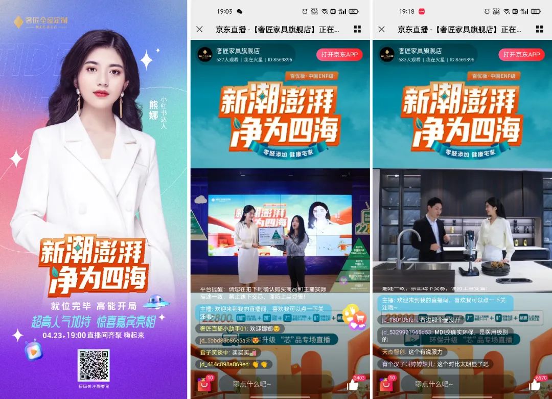 4月23日,大促活動(dòng)邀請(qǐng)小紅書(shū)生活達(dá)人親臨奢匠城市展廳,開(kāi)展線上直播活動(dòng),為大家?guī)?lái)優(yōu)惠福利政策的同時(shí)以消費(fèi)者的視角,近距離沉浸式體驗(yàn)奢匠產(chǎn)品的魅力。