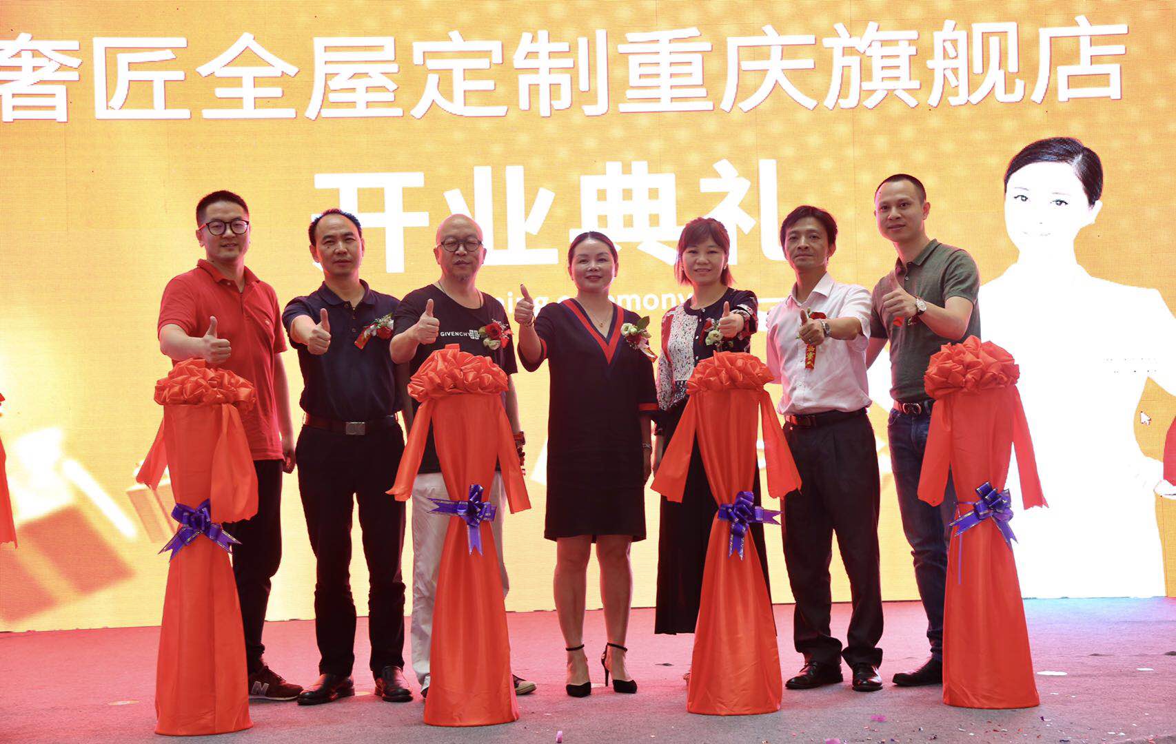 在重慶市渝北區(qū)金開大道富森美.聚信美家居1號店,奢匠全屋定制重慶旗艦店的開業(yè)典禮上,奢匠家居總裁王延容女士、重慶富森美·聚信美家居1號店副總經(jīng)理張倩女士、全國工商聯(lián)家具裝飾業(yè)商會重慶辦公室主任欒清華先生、重慶廚柜衣柜定制協(xié)會秘書長袁建明先生、重慶家具協(xié)會秘書長丁華先生、奢匠家居總經(jīng)理蔣松澤先生、騰訊家居楊傳書先生、奢匠家居品牌總監(jiān)陳明煌先生、奢匠家居渠道總監(jiān)鄭森林先生等領(lǐng)導(dǎo)嘉賓蒞臨。