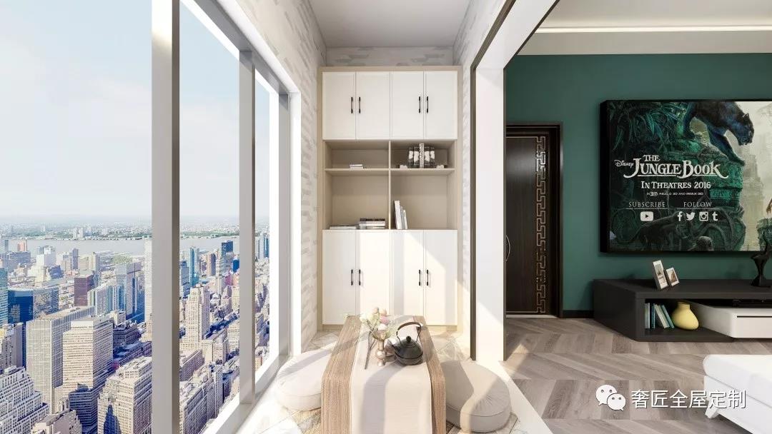 將飄窗周邊都打造成柜子,半開放式布局+一柜置頂式設計,充分利用每一寸空間,不但最大程度延伸了飄窗的收納功能,也更易于日常打理。飄窗底部設計成儲物抽屜,方便隨手物品的收納。