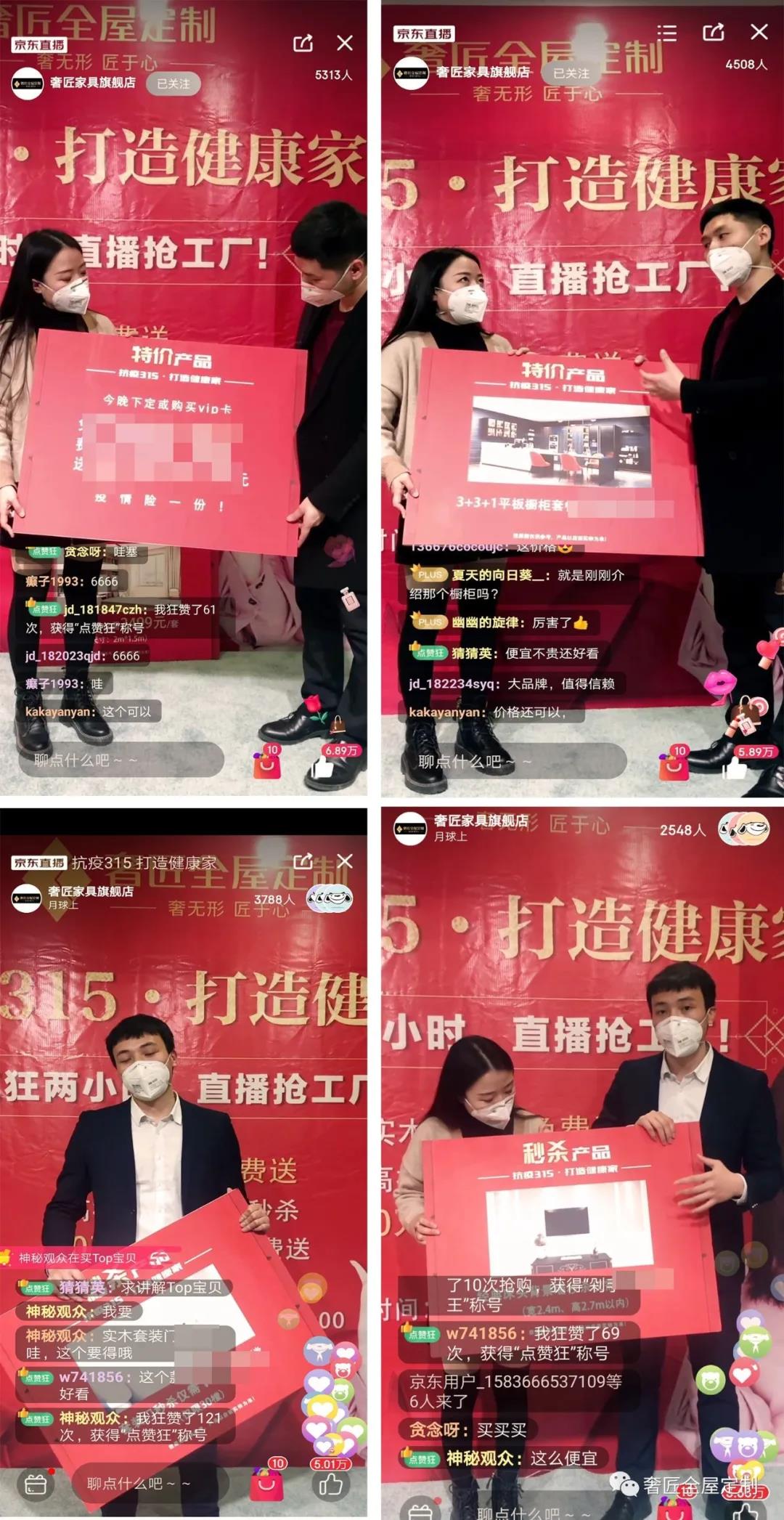 本次奢匠直播搶工廠活動(dòng),2小時(shí)累計(jì)直播在線近萬人,直播點(diǎn)贊數(shù)10萬+,在線評論近2萬條。雖處疫情期間,奢匠依然通過線上獲取了眾多客戶,人氣十分火爆,由此可見,客戶對于奢匠線上活動(dòng)的熱情和支持!