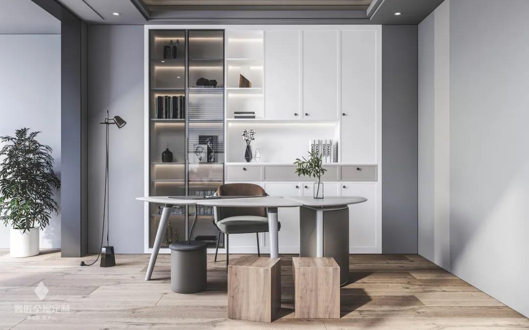 常規(guī)的書房都擁有工作區(qū)以及收納區(qū),書桌和書柜肯定是必不可缺的;書房的面積夠大的話,可以考慮增加休閑區(qū)域,根據(jù)空間的大小增加茶幾、沙發(fā)、榻榻米等。如果家中沒有合適的書房空間,可以將臥室打造成榻榻米+書房的多功能房間,可實現(xiàn)書房和臥室雙重功能。