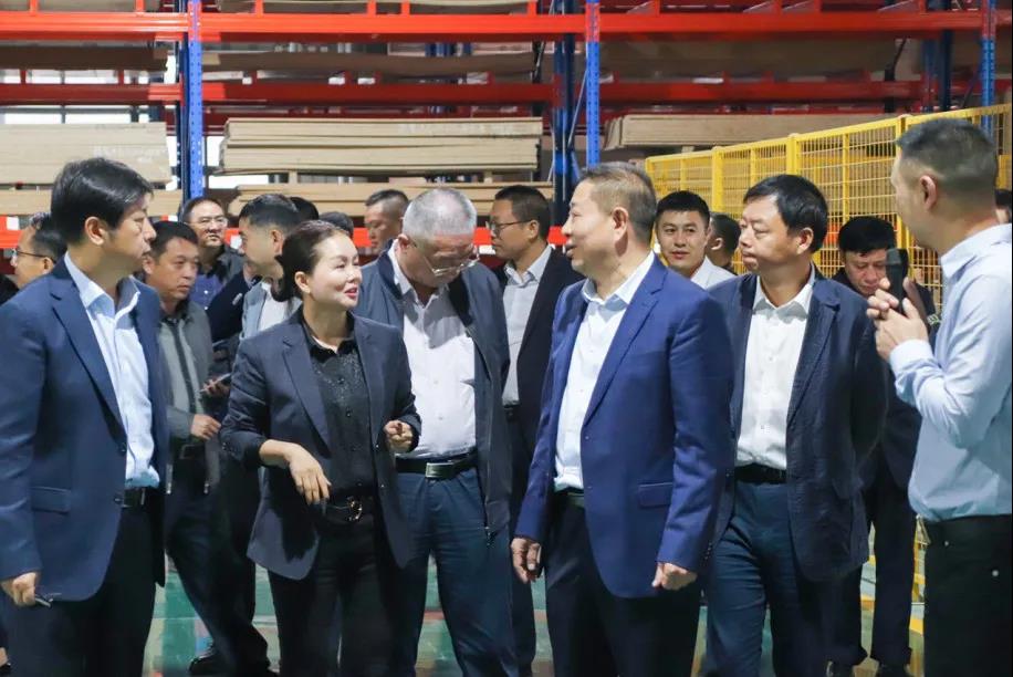 大足區(qū)常務副區(qū)長蘇一元 、副區(qū)長楊烈、區(qū)人大副主任駱華、區(qū)政協(xié)副主席張秀榮等各位領導先后參觀了奢匠家居板式車間、實木車間,充分了解奢匠產品構架、生產管理體系以及安全生產情況。