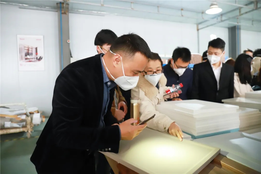 蔣老師講授產(chǎn)品理論知識,帶領(lǐng)大家參觀工廠,了解奢匠產(chǎn)品生產(chǎn)流程以及生產(chǎn)工藝。