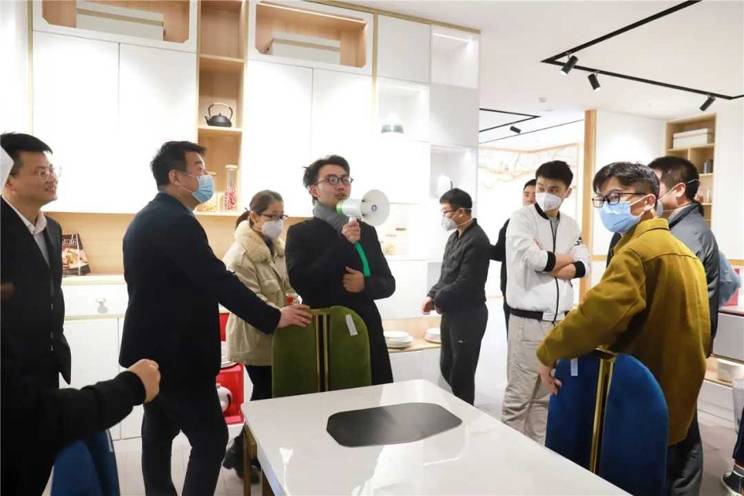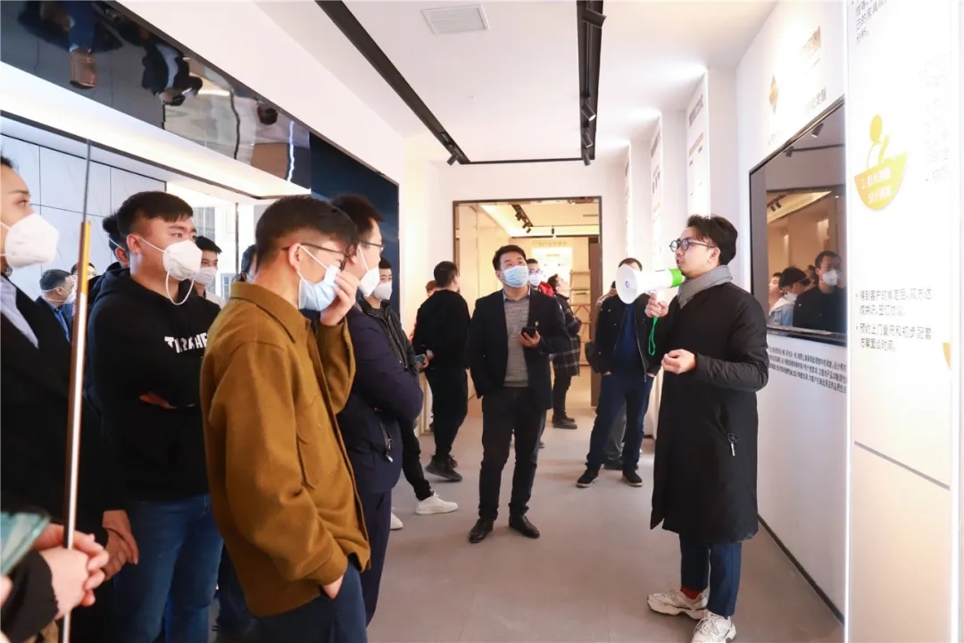 梁老師帶領(lǐng)大家參觀工廠5000㎡旗艦展廳,講解各展廳的設(shè)計理念、產(chǎn)品風(fēng)格、各產(chǎn)品的講解話術(shù)等內(nèi)容。