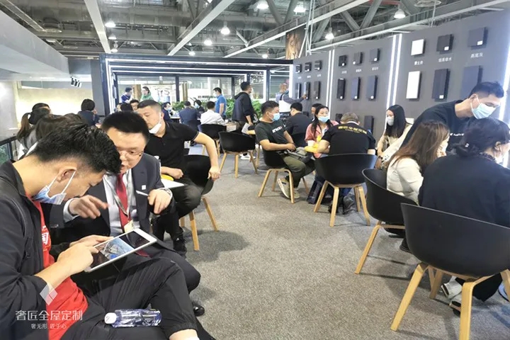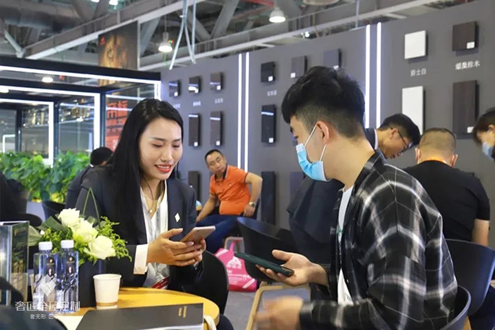 奢匠高顏、高質(zhì)現(xiàn)代輕奢展館吸引不少現(xiàn)場(chǎng)顧客駐足鑒賞,多種設(shè)計(jì)元素搭配高級(jí)輕奢質(zhì)感色調(diào),交相呼應(yīng),廣受消費(fèi)者喜愛。