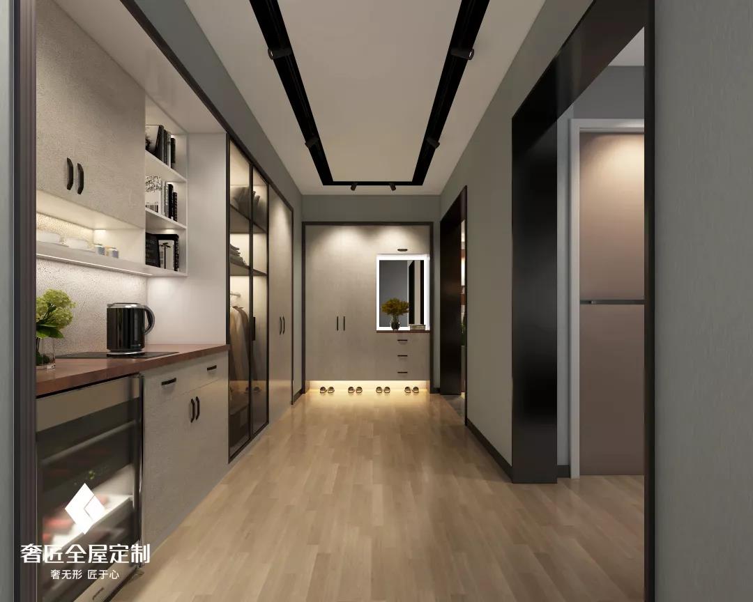 輕奢衣帽間整體設計給人一種非常放松的體驗,沒有過多的炫耀式的裝飾,在簡約的空間里,通過材質、色彩的運用,將輕奢風打造得淋漓盡致。把衣物、包包放在一個專門的區(qū)域分類收納,讓家居變得干凈整潔,滿足對家舒適與品質的雙重需求。