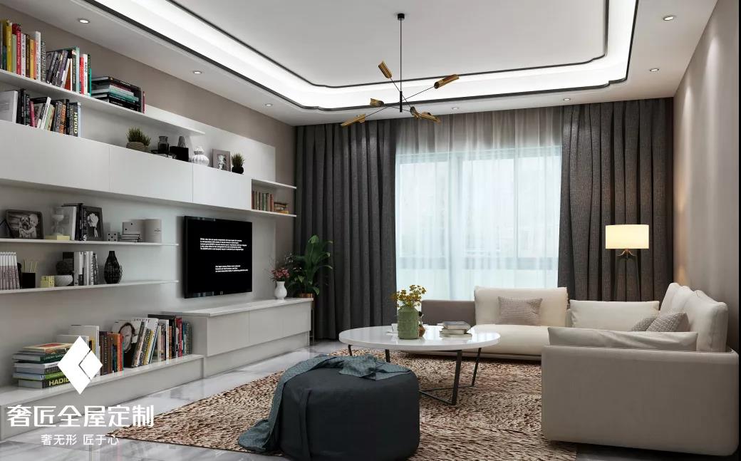 除了空間配色十分重要之外,現(xiàn)在大多數(shù)的輕奢風格都是用簡約的設計來襯托出奢華的氣質??蛷d注重點、線、面的有機結合,以柜體材質本身來展現(xiàn)華麗感,完美詮釋輕奢風格。