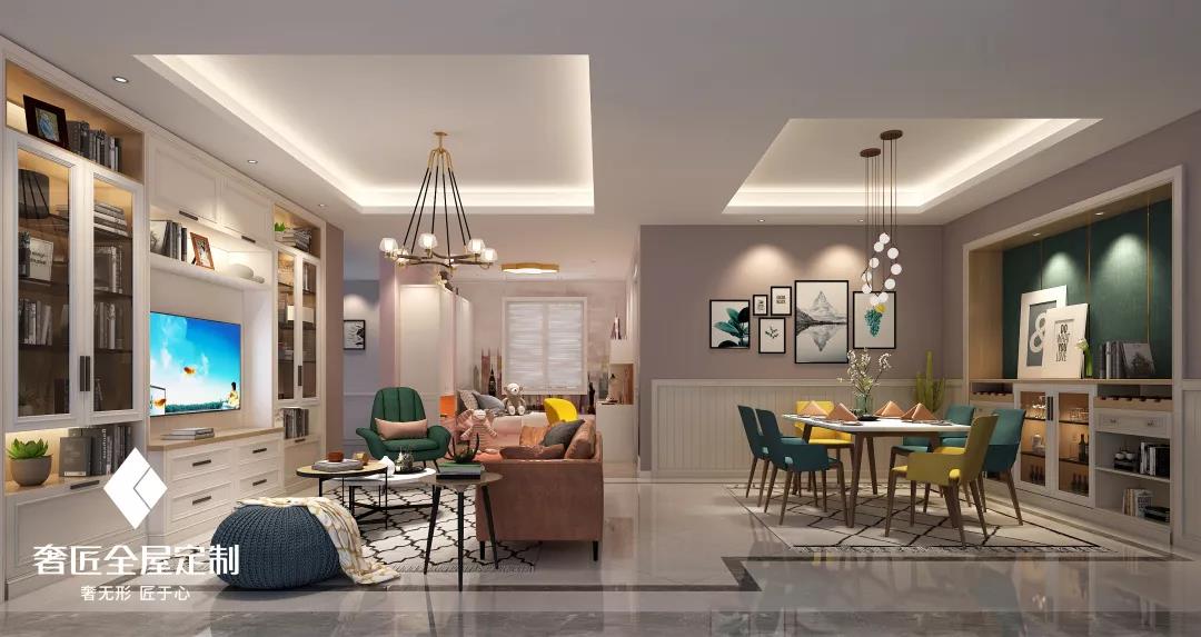 客廳、餐廳、書房的功能“三合一”,多個功能性空間進行組合設計,能夠更好的利用客廳空間,讓布局更加集中,有效避免單獨設立功能空間,面積不夠而顯得擁擠。