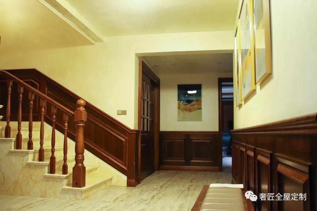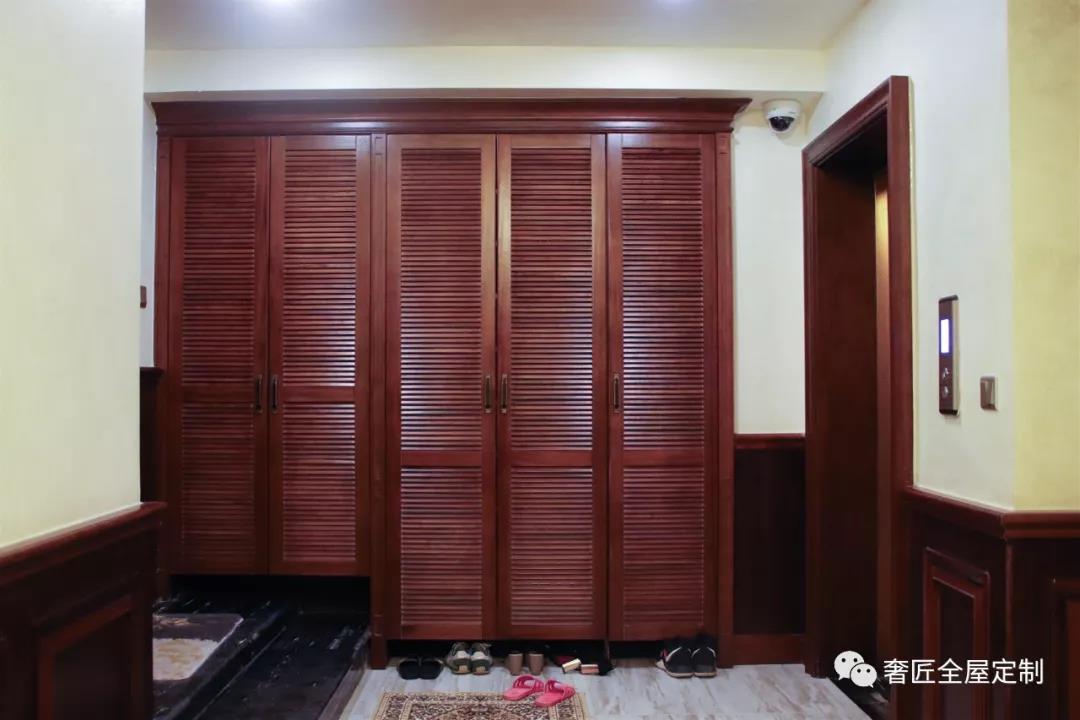 王女士家戶型比較大,三樓有一處室外露臺,因此在三樓通往戶外露臺的玄關(guān)處放置一個(gè)鞋柜,可方便進(jìn)出時(shí)換鞋、掛衣和存放臨時(shí)物品,鞋柜以簡約的柜體造型為基礎(chǔ),增添了中式元素,使整體空間感覺更加豐富,大而不空、厚而不重,有格調(diào)又不顯壓抑。