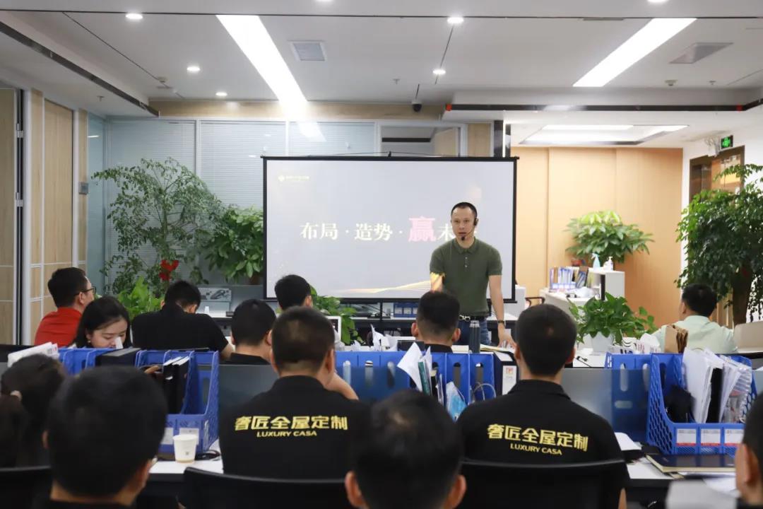 進(jìn)步源于總結(jié),發(fā)展源于規(guī)劃。聽取了各部門負(fù)責(zé)人年中匯報(bào)后,奢匠總經(jīng)理蔣松澤對(duì)營(yíng)銷中心上半年的工作成果予以了肯定,并分析各部門在工作中存在的問(wèn)題,針對(duì)性提出解決方案,指導(dǎo)下半年各部門的重點(diǎn)工作方向。