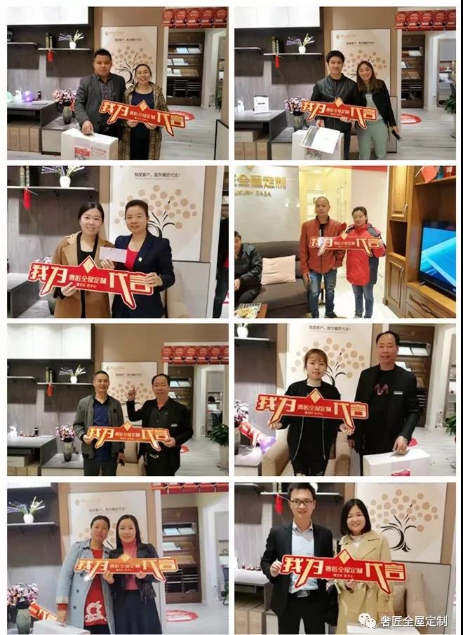 經(jīng)過(guò)鄰水店全體成員前期的充足準(zhǔn)備和每天辛勤的付出,在奢匠主動(dòng)營(yíng)銷戰(zhàn)隊(duì)的策劃幫扶與超強(qiáng)的執(zhí)行力下,此次開(kāi)業(yè)活動(dòng)收獲佳績(jī),超額完成目標(biāo)。最終簽單50組,預(yù)計(jì)銷售額120萬(wàn)!