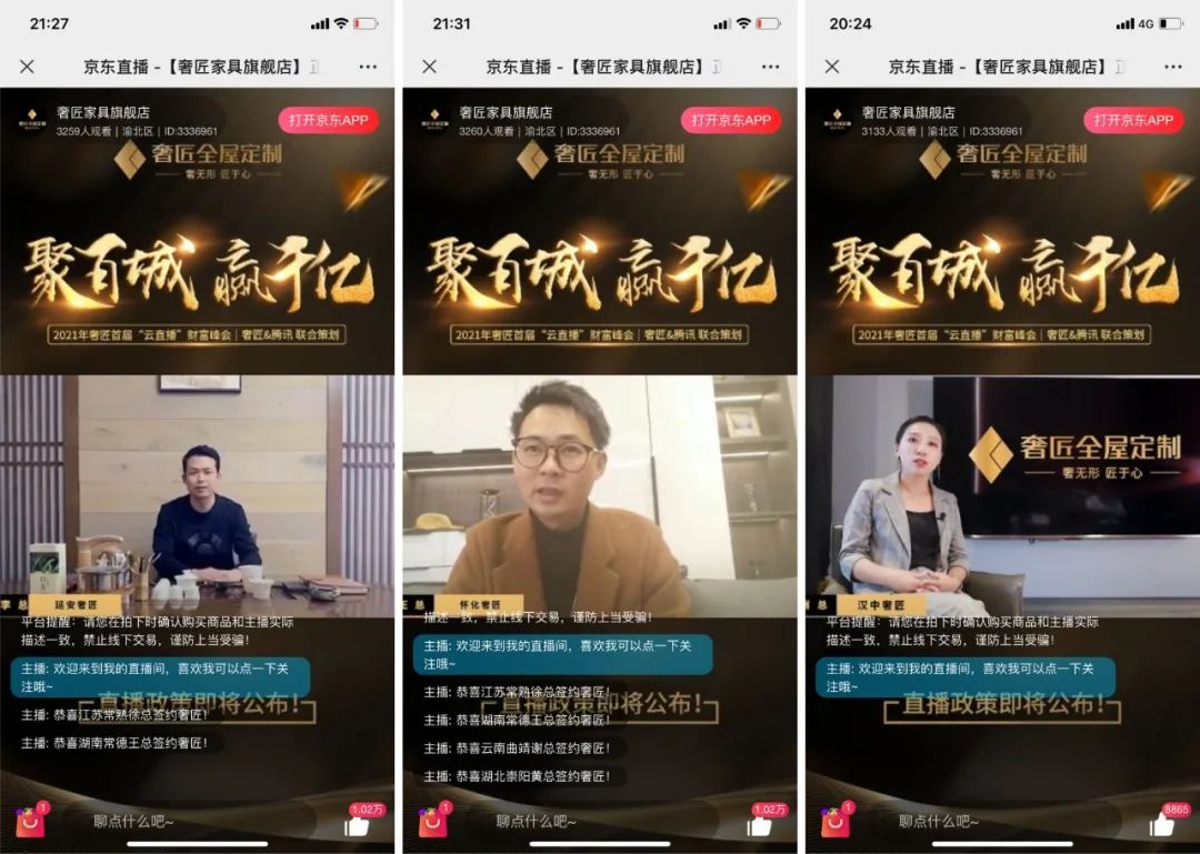 直播最后,劉總為直播間眾多意向客戶宣布了加盟奢匠的九大優(yōu)惠政策。此次財富峰會加盟政策非常給力,大大激發(fā)了意向商們的加盟熱情,整場直播下來,有27組意向加盟商均選擇在線簽約,把握財富機(jī)遇!