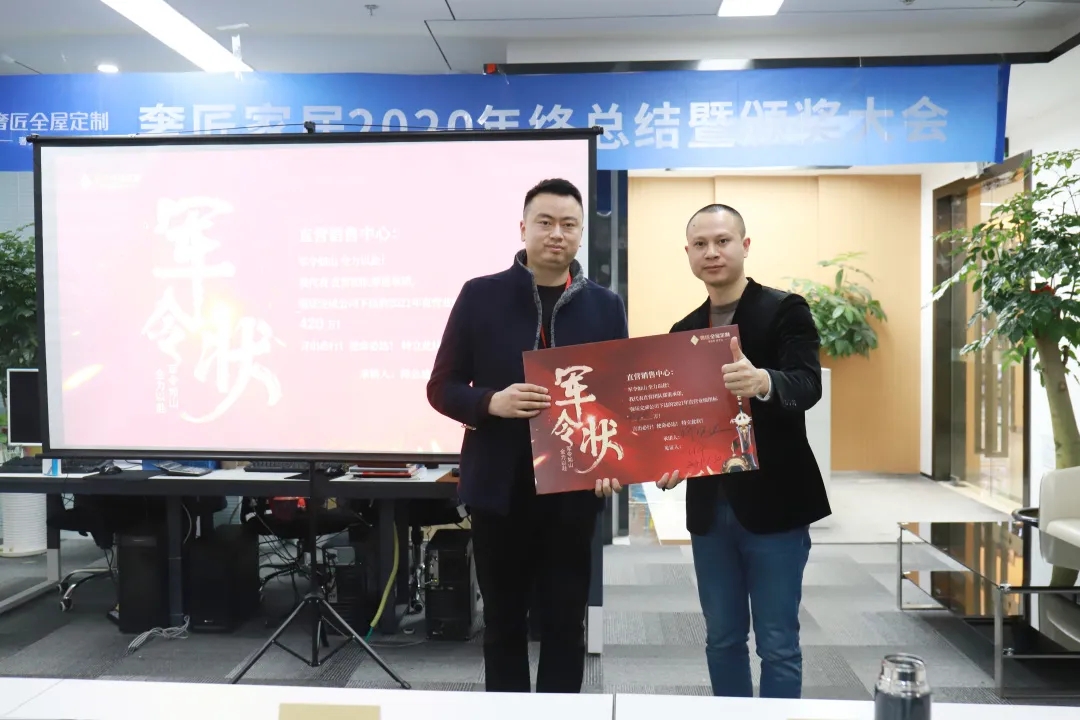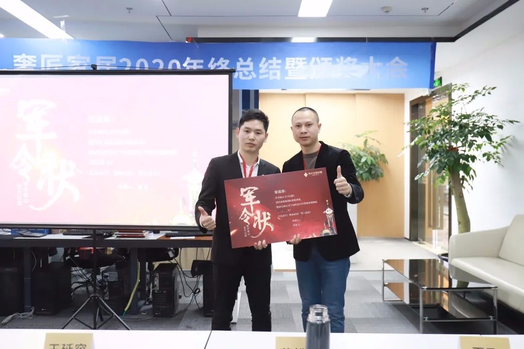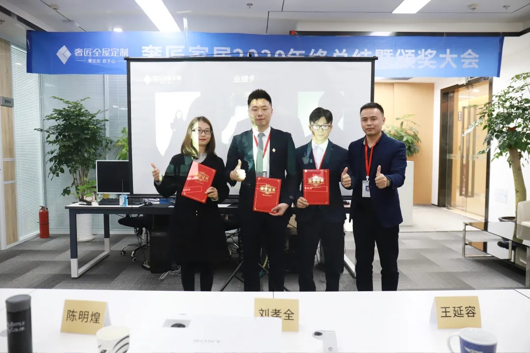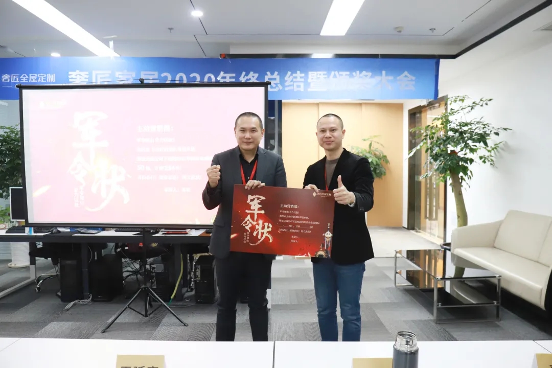 2021年1月30日,奢匠2020年終總結(jié)暨頒獎(jiǎng)大會(huì)于奢匠營(yíng)銷中心舉行。奢匠家居總裁王延容、總經(jīng)理蔣松澤、營(yíng)銷副總劉孝全、各部門負(fù)責(zé)人及營(yíng)銷中心全體人員參加了此次會(huì)議。