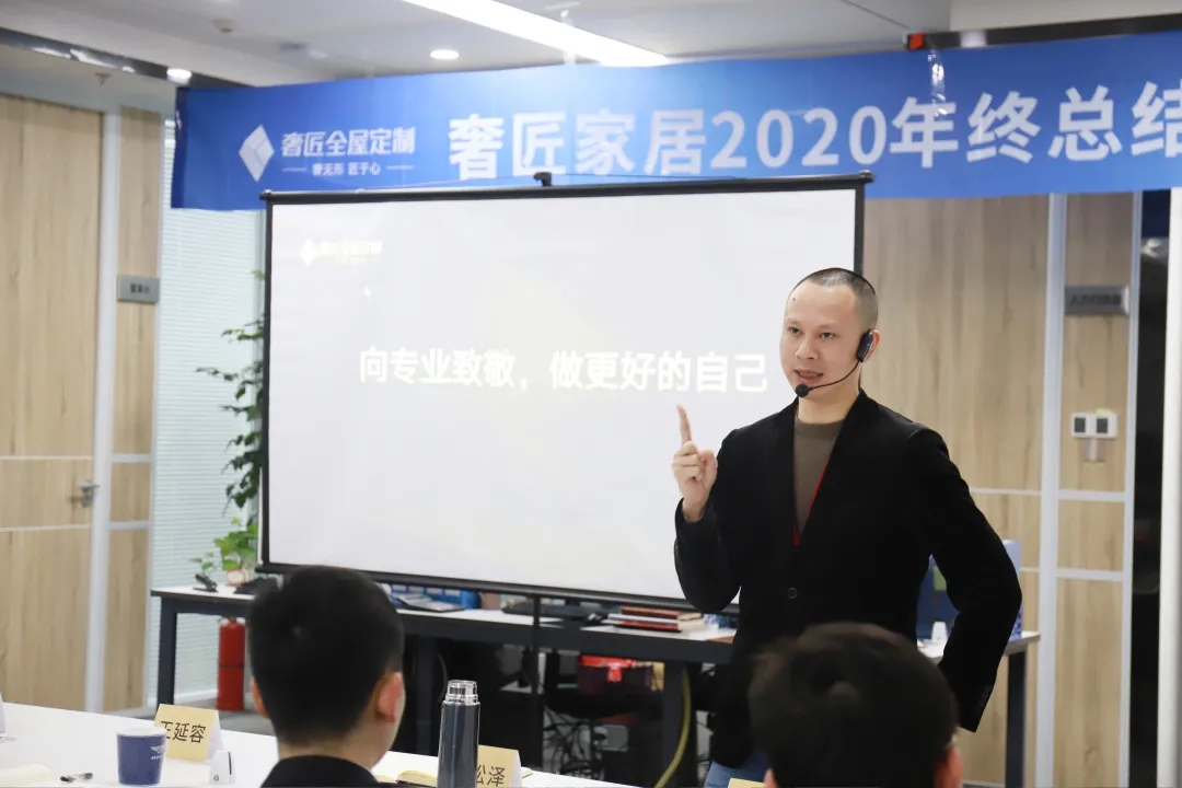 各部門宣誓后,奢匠總經(jīng)理蔣松澤對(duì)2020年各部門的工作情況進(jìn)行了點(diǎn)評(píng),對(duì)各部門的工作成果予以了肯定,并指出各部門在工作中存在的問(wèn)題,分析2021行業(yè)趨勢(shì),針對(duì)性提出解決方案。蔣總表示:時(shí)至今日,奢匠已經(jīng)2歲了,僅僅兩年時(shí)間,奢匠從無(wú)到有,從有到精,從籍籍無(wú)名到如今西南地區(qū)定制家居最大的黑馬,這里不僅要感謝集團(tuán)公司對(duì)奢匠的投入,還要感謝全體奢匠人做出的一切努力。在即將到來(lái)的2021年,挑戰(zhàn)與機(jī)遇并存,希望大家向?qū)I(yè)致敬,加快提升個(gè)人的專業(yè)素養(yǎng),做更專業(yè)的人才,成就更優(yōu)秀的自己、成就更專業(yè)的奢匠,讓奢匠成為受人尊敬的定制家居品牌。