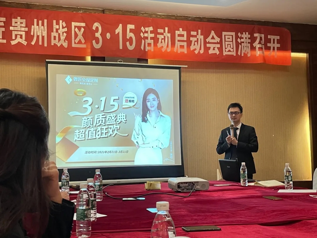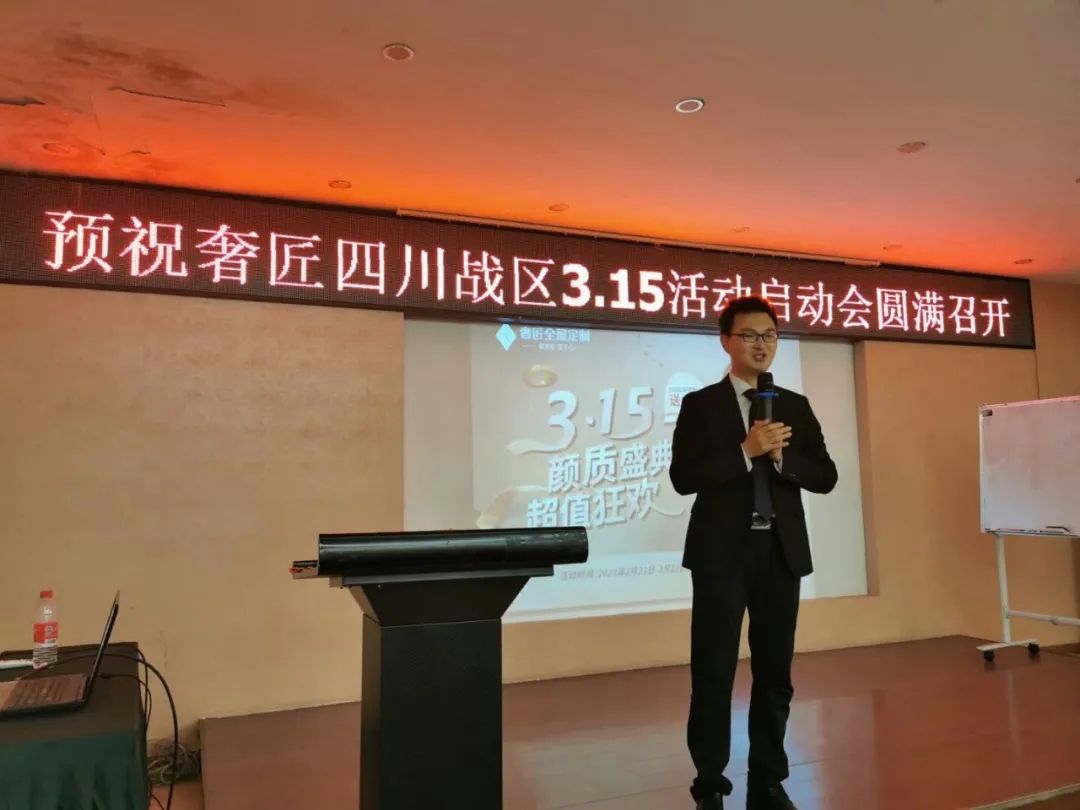 工欲善其事必先利其器!奢匠大區(qū)經(jīng)理在各啟動(dòng)會(huì)上針對(duì)目前的市場(chǎng)形勢(shì)為經(jīng)銷商伙伴們解讀了3.15活動(dòng)方案,同時(shí)詳細(xì)分析客戶心理以及快速成單技巧等。