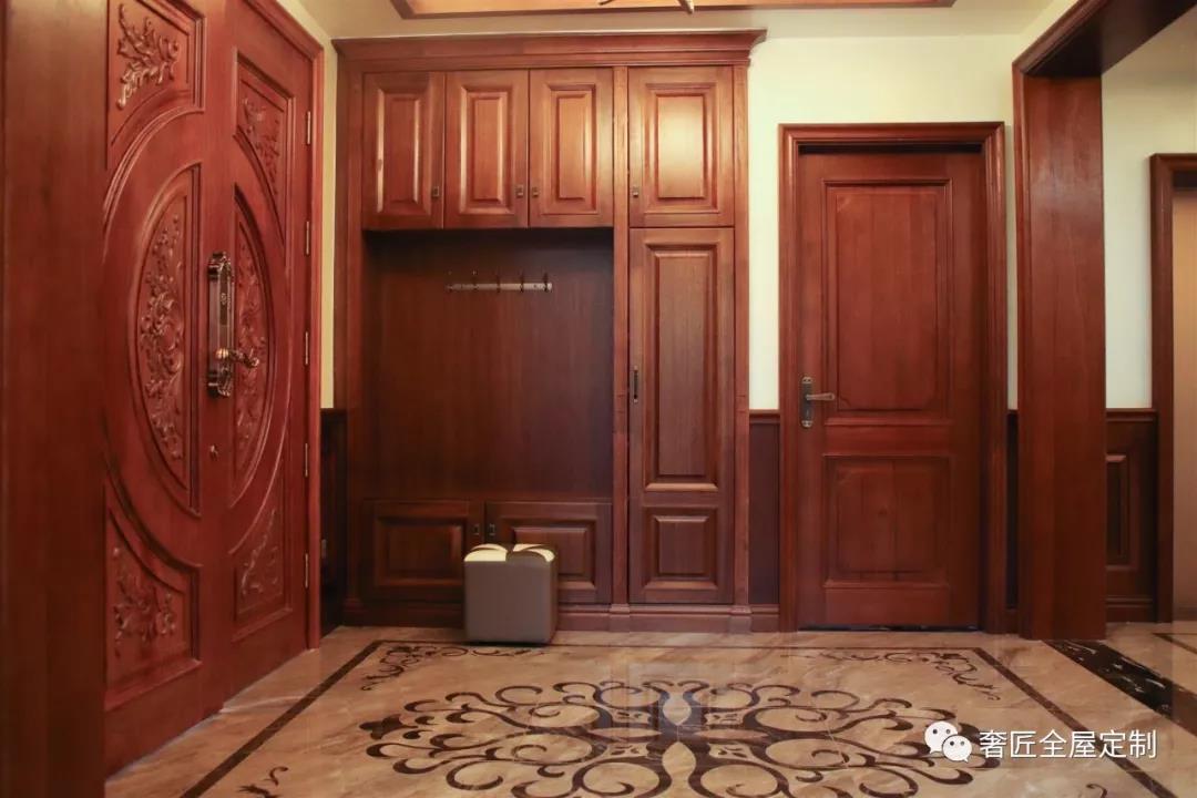 王女士家戶型比較大,三樓有一處室外露臺,因此在三樓通往戶外露臺的玄關(guān)處放置一個鞋柜,可方便進出時換鞋、掛衣和存放臨時物品,鞋柜以簡約的柜體造型為基礎(chǔ),增添了中式元素,使整體空間感覺更加豐富,大而不空、厚而不重,有格調(diào)又不顯壓抑。