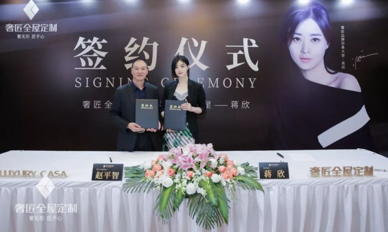 奢匠家居董事長趙平智與蔣欣簽約合影