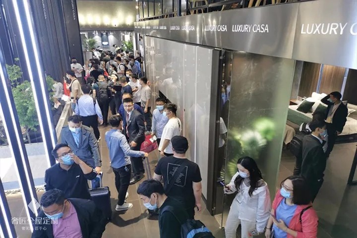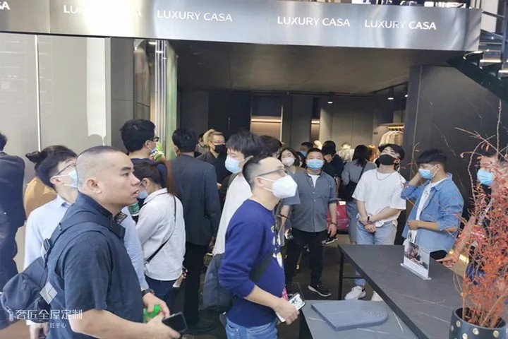 奢匠高顏、高質(zhì)現(xiàn)代輕奢展館吸引不少現(xiàn)場顧客駐足鑒賞,多種設(shè)計元素搭配高級輕奢質(zhì)感色調(diào),交相呼應(yīng),廣受消費者喜愛。