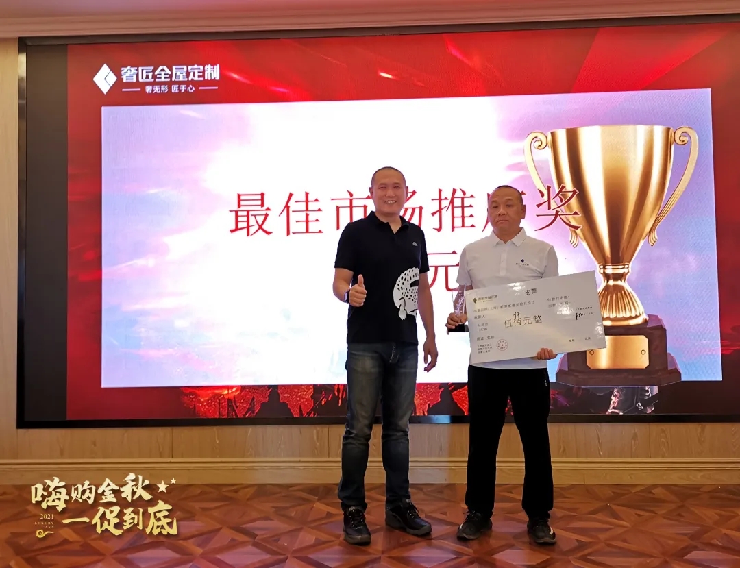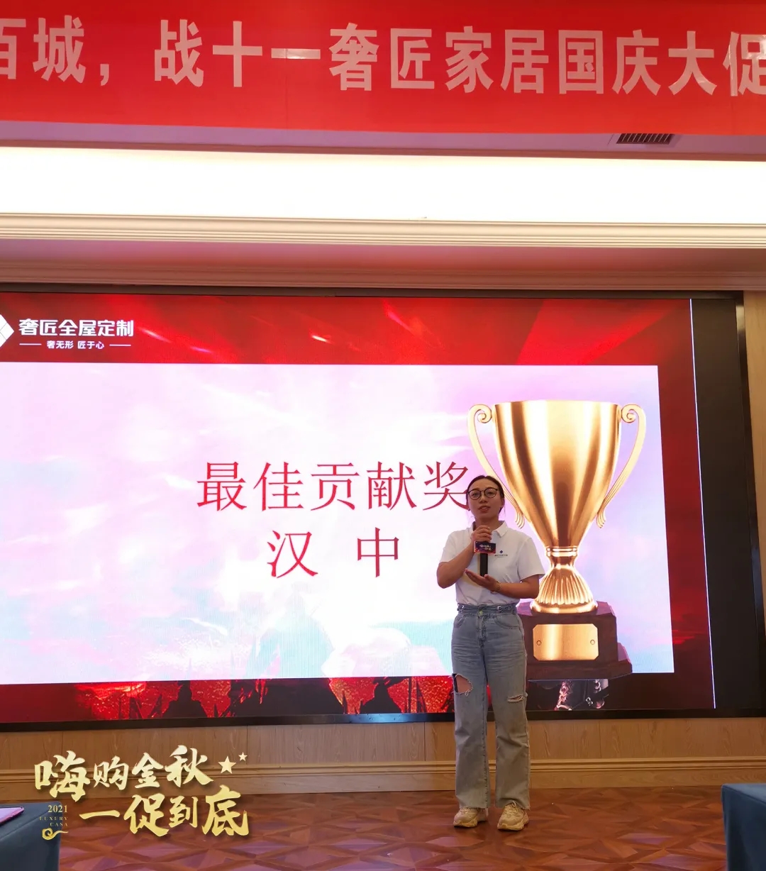 劉經(jīng)理分別為哈密、遂寧、漢中奢匠頒發(fā)業(yè)績(jī)冠軍獎(jiǎng)。