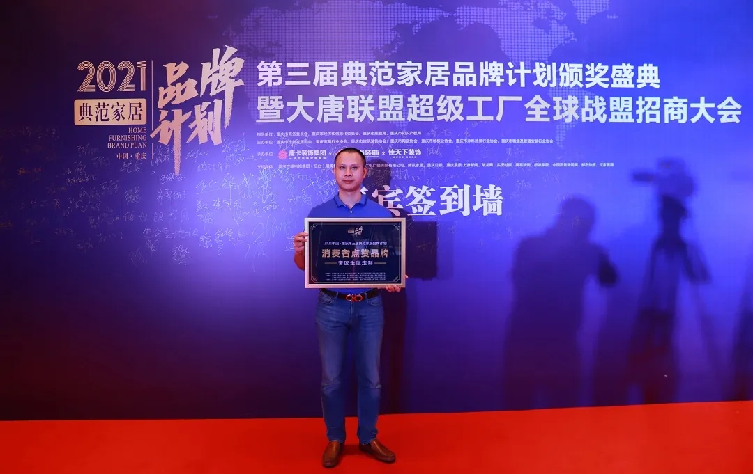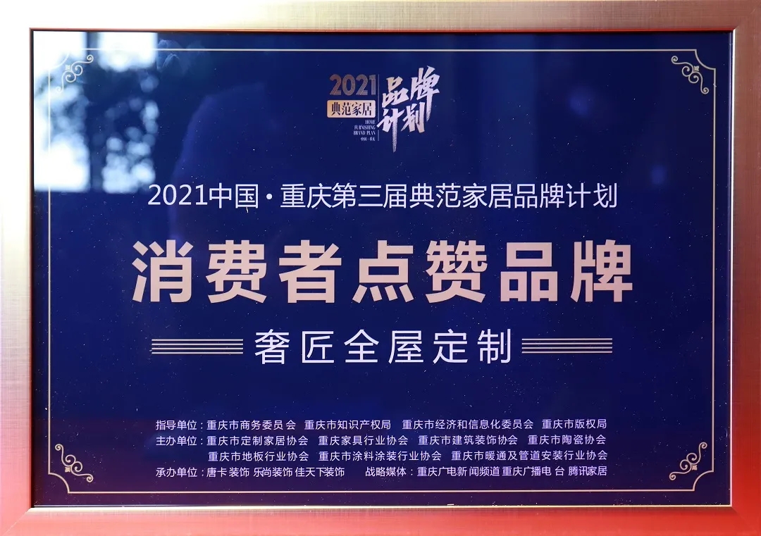▲奢匠榮獲“2021第三屆典范家居品牌計(jì)劃-消費(fèi)者點(diǎn)贊品牌”