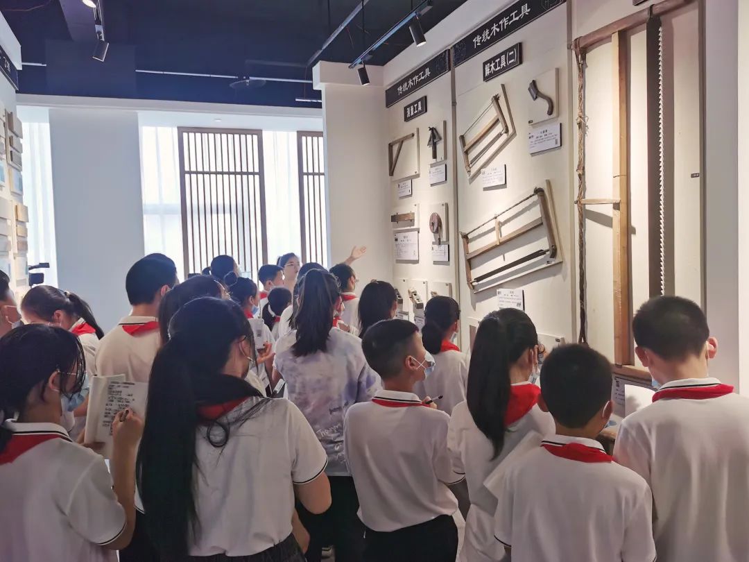 緊隨其后,奢匠商學(xué)院余舟余老師帶領(lǐng)前來參觀的師生們參觀了奢匠的木文化博物館。余老師對現(xiàn)場傳統(tǒng)木作工具的起源、用途做了詳細(xì)的介紹,并在現(xiàn)場為大家展示了榫卯結(jié)構(gòu)的奇妙之處,引起了同學(xué)們對傳統(tǒng)木作的強(qiáng)烈興趣。同學(xué)們通過記筆記、細(xì)致入微地觀察和觸摸,近距離感受傳統(tǒng)文化的魅力,同時也被古人的智慧和匠心所折服。