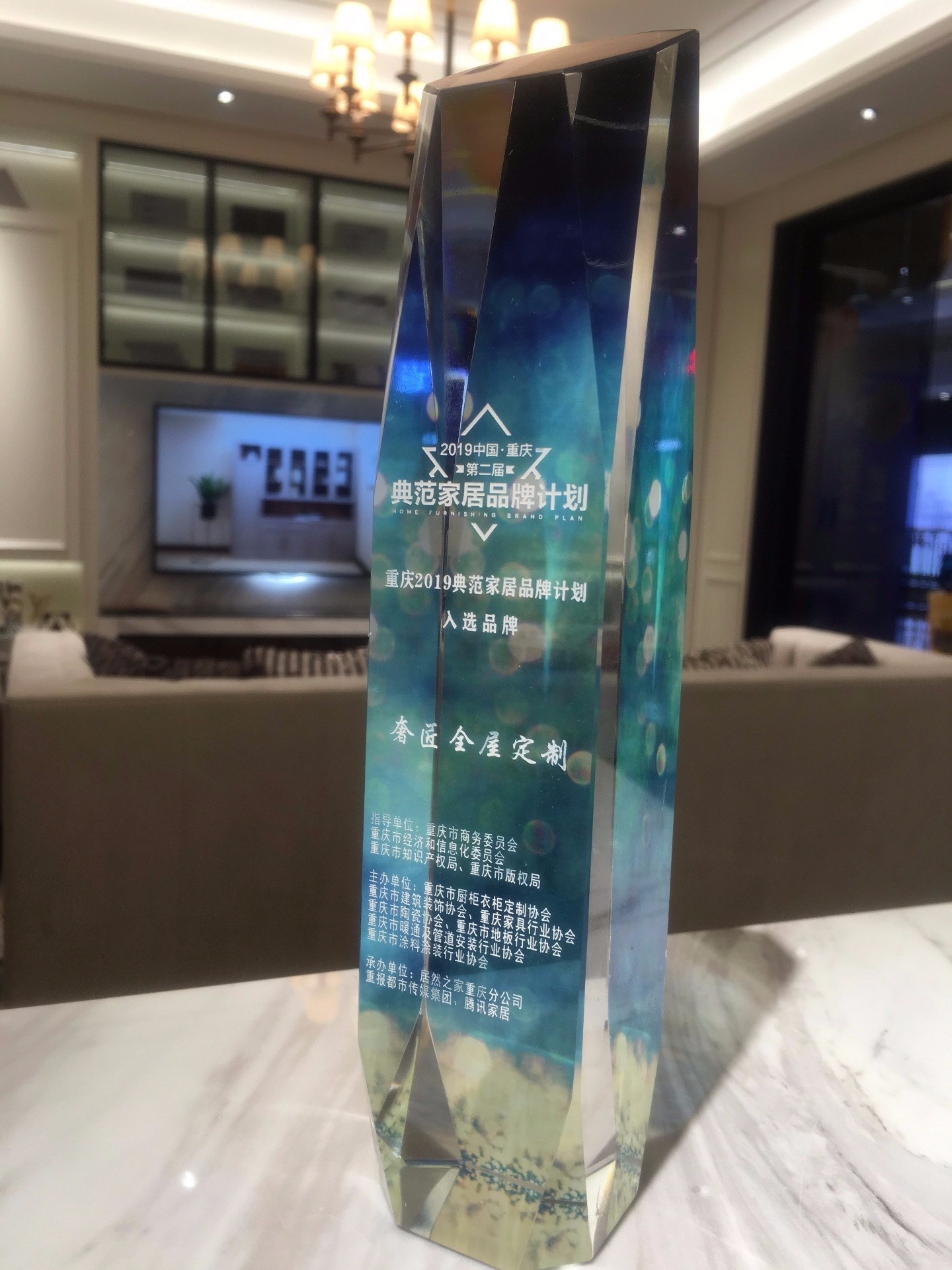 (奢匠全屋定制當(dāng)選典范家居品牌榮譽(yù)獎杯)