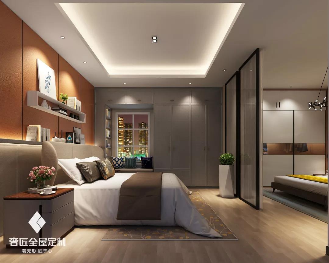 想打造一間簡潔樸素、舒適溫馨,但又不失時尚優(yōu)雅氣質(zhì)的高品質(zhì)輕奢風(fēng)臥室,總少不了創(chuàng)意十足的裝飾。時尚簡約的色彩基調(diào),再搭配獨特別致的床頭置物架,在空間視覺上做文章,能產(chǎn)生畫龍點睛的效果,彰顯設(shè)計感的同時,讓空間看起來更加時尚。