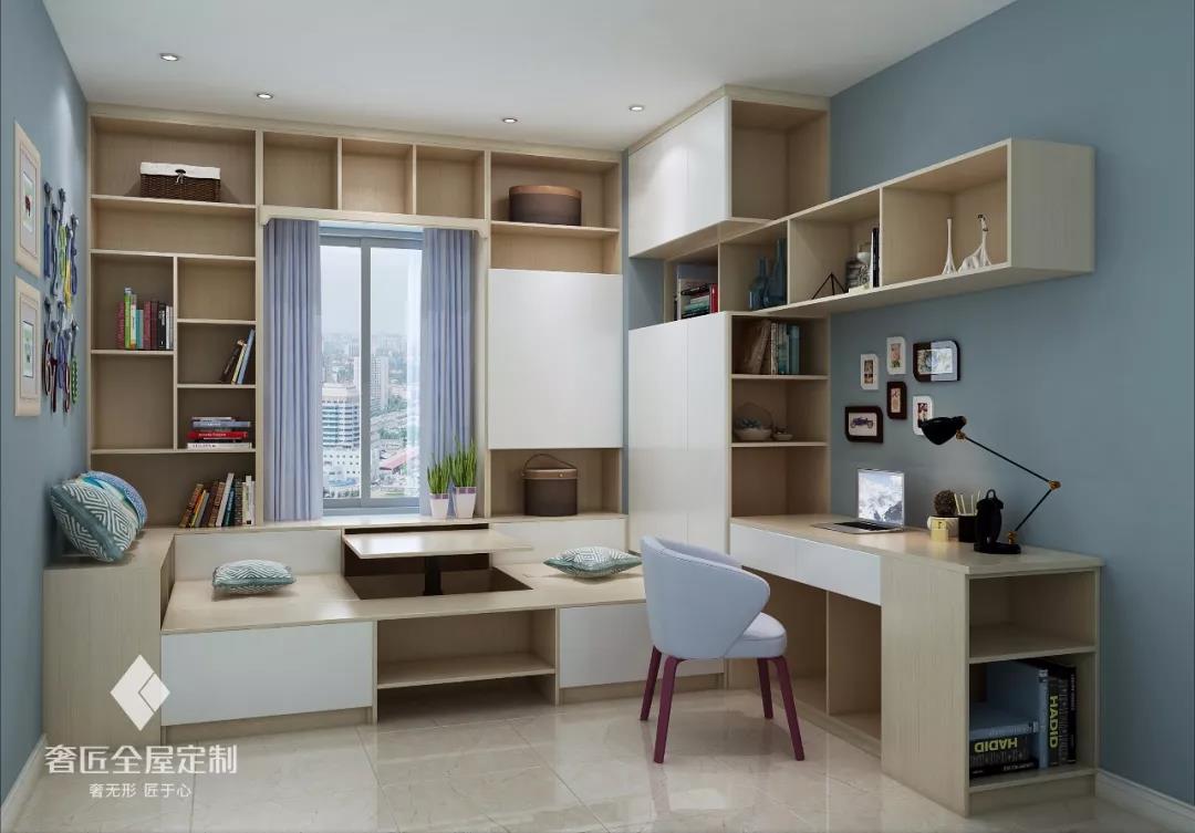 一間面積不大的房間,可以考慮榻榻米+小茶桌+書柜的組合設計,整面墻的收納柜和一體化書桌,能夠?qū)M皆收藏,讓空間充滿寧靜的氣息。榻榻米的升降小茶桌,可在閑暇之余,沏一壺茶,慢慢品茗,在滿室茶香中,享受一段愜意時光!
